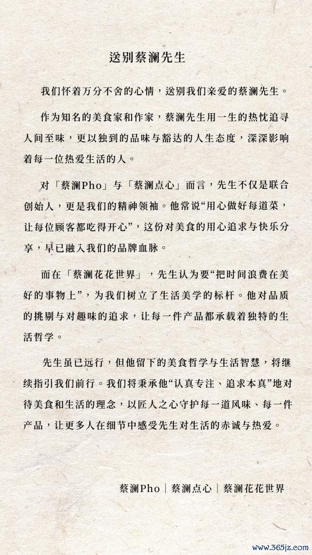 刚刚体育游戏app平台,"蔡澜点心"微信公号发文送别蔡澜先生并公布遗信。