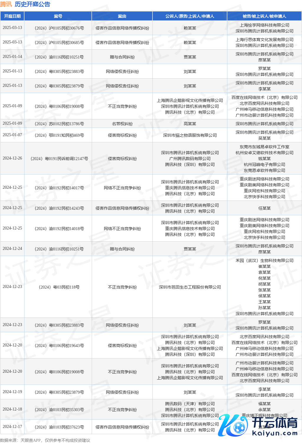 本站音信,笔据天眼查APP表现,近日公布了一则深圳市腾讯计较机系统有限公司看成被告/被上诉东谈主的开庭公告,详备履行如下: