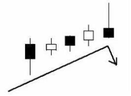 (3)这根K线可为阳线亦可为阴线,一般以阴线居多,上影线需超出实体的3~5倍。