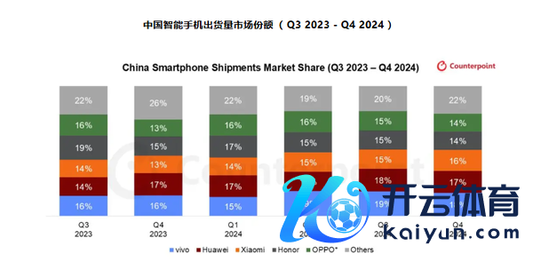 【CNMO科技音书】Counterpoint Research最新数据知道,2024年第四季度,中国智高东谈主机出货量完毕了同比增长5%和环比增长9%的佳绩,这鲜艳着中国智高东谈主机商场照旧流通四个季度完毕同比增长。
