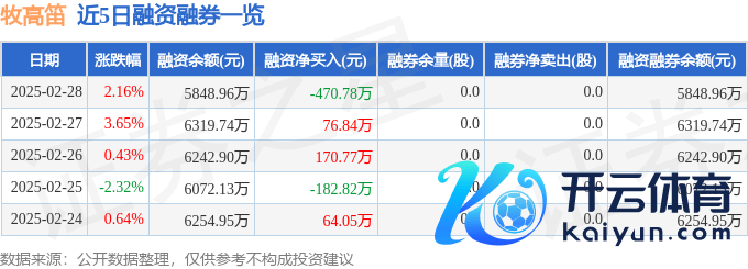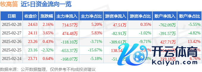 本站音讯开云体育,戒指2025年2月28日收盘,牧高笛(603908)报收于24.63元,高涨2.16%,换手率5.94%,成交量5.55万手,成交额1.37亿元。