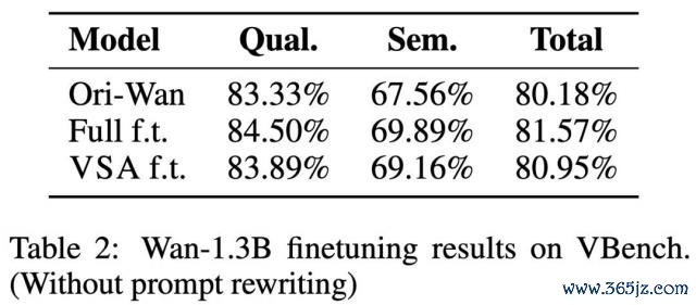 如表 2 所示,领受 VSA 的模子在 VBench 评分上以至特出了原始 Wan-1.3B。