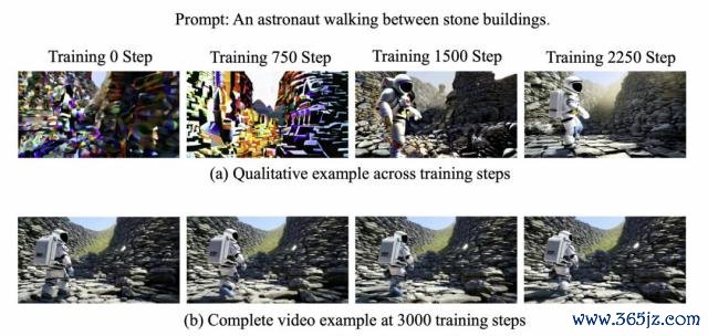 临了,团队还对模子作念了定性实验,下图展示了跟着熟悉鼓吹,模子安详稳妥零散郑重力机制,最终规复了生成连贯视频的才略。