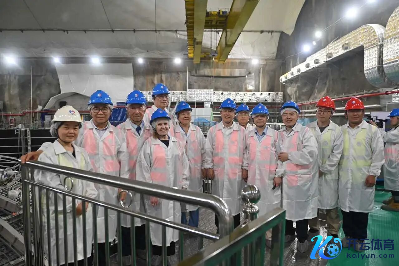2023年5月22日,白春礼院长(左二)陪着宇宙知名物理学家、诺贝尔奖得主丁肇中先生(左三)参不雅江门地下中微子实验基地。在恩师丁肇中眼前,王贻芳(右四)交上了一份及格的功课