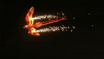 到了夜场 ,视觉冲击径直拉满!飞天龙、飞天凤携红光掠过夜空,炭火龙逶迤游走,龙身光影在青砖墙高尚转如星!打铁花蓦地撒落,金雨漫天似银河流泻;火裙旋舞、火壶翻飞,吐火、吃火、火魔方连环炸场,炎火与月色相融,颠簸入心。